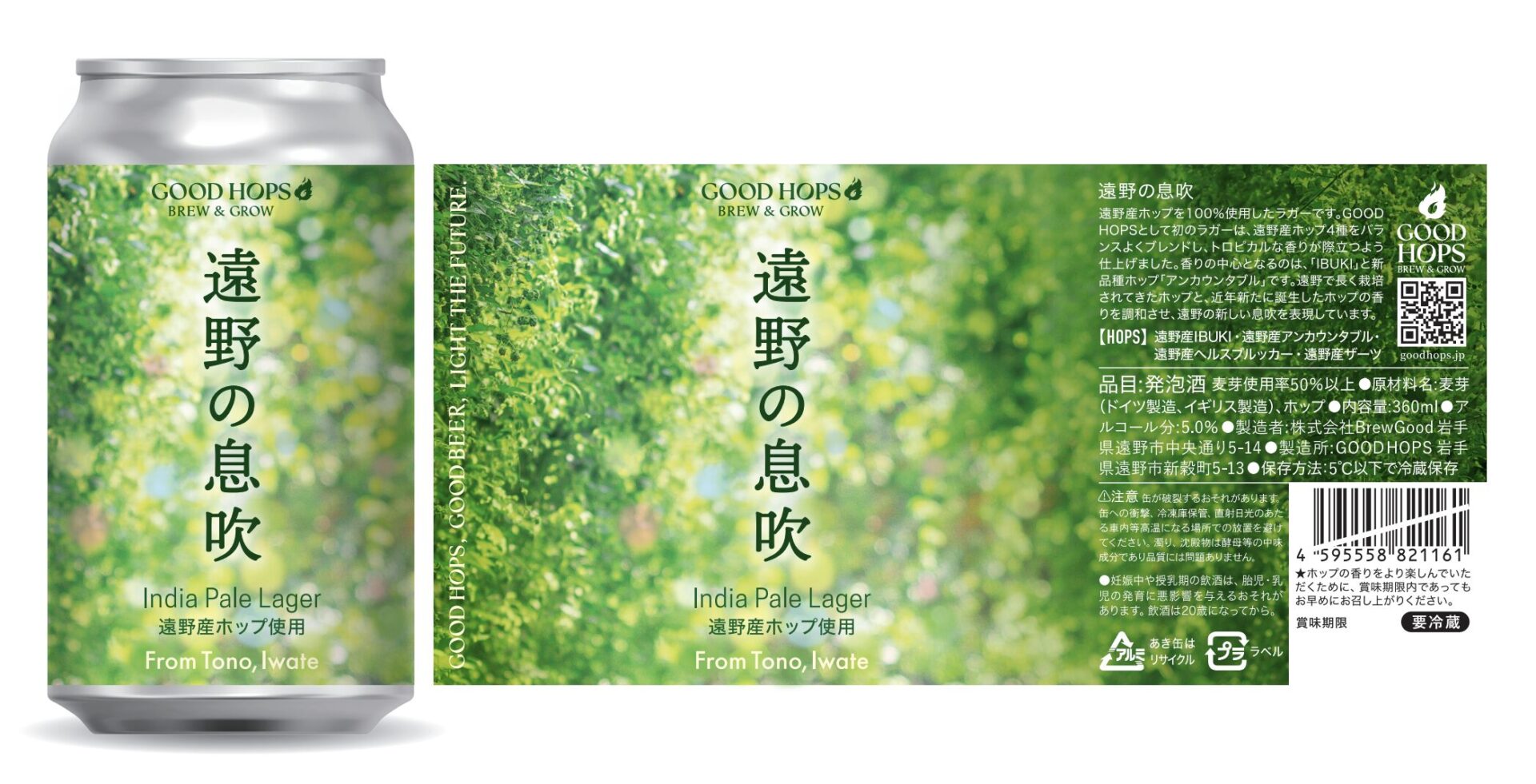 遠野産ホップを100%使用したラガーです。GOOD HOPSとして初のラガーは、遠野産ホップ4種をバランスよくブレンドし、トロピカルな香りが際立つよう仕上げました。香りの中心となるのは、「IBUKI」と新品種ホップ「アンカウンタブル」です。遠野で長く栽培されてきたホップと、近年新たに誕生したホップの香りを調和させ、遠野の新しい息吹を表現しています。